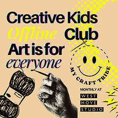 Book here for your young creative to join the 10-11am session for ages 5-14. The workshops are led by Cara from MY CRAFT TRIBE (also known as Cara Oliver Fibre Artist), an experienced tutor of modern and sustainable arts and crafts for all ages, children, teen and adults. Creative Kids Club workshops are held monthly on Sundays (see yellow dots on the calendar for next available dates) at West Hove Studio. This session is at 10am but another is also available at 11.30 am. CONTEMPORARY ART & CRAFT PROJECTS Each workshop is designed to be contemporary fun and to develop creative confidence. Topics will include textile & art techniques/great artist studies/mental health & well-being/ sustainability, climate change & biodiversity restoration. For details of the upcoming week's activity follow @mycrafttribe on Instagram. START TIME Arrive for a 10am start as we will start promptly with instruction at the beginning that you will not want to miss. The session lasts for one hour and it is a family session with parent/carer encouraged to stay and enjoy the digital free time together. They really do love that time together. ART CAN BE MESSY Aprons will be provided but best dress is perhaps best avoided. FORM COMPLETION Please ensure you complete the booking form with as much information as possible. EMAIL SIGN UP Opt into emails to keep up to date with future events as they often sell out quickly. CANCELLATION: Please note tickets are for the date booked and non refundable or transferable.